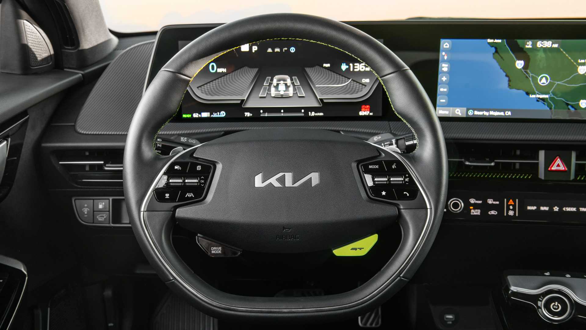 그 GT 버튼은 주력 EV6 트림 전용 주행 모드를 활성화합니다. Eco, Normal 및 Sport 모드는 전기 모터의 출력을 약간 제한하는 반면 GT 모드는 576hp의 힘을 최대한 발휘하여 지금까지 만들어진 기아차 중 가장 강력하고 가장 빠르게 가속합니다. EV6 GT는 3.4초 만에 시속 60마일까지 질주합니다. 이는 표준 Ford Mustang Mach-E GT보다 4/10, Tesla Model Y Performance보다 10분의 1 빠른 속도이며 최고 속도는 161mph입니다. 기아차는 4륜 그립과 순간 토크의 권위로 라인을 밀어낸다.