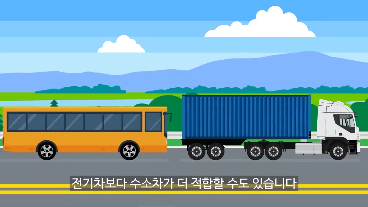 수소차는 충전에 5분 완료하는 수소 탱크가 있어서 대형차량이나 주행 거리가 긴 상용차에 적합하답니다.