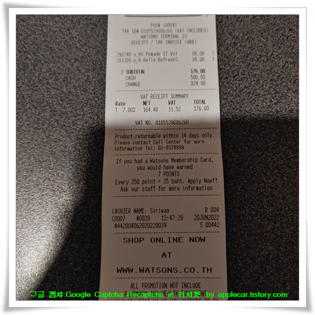 | ♠♠♠ 구글 캡챠, 리캡차 : 태국 편의점 물가, 센트럴페스티벌 ♠♠♠ (0) | 2022.07.19 |
