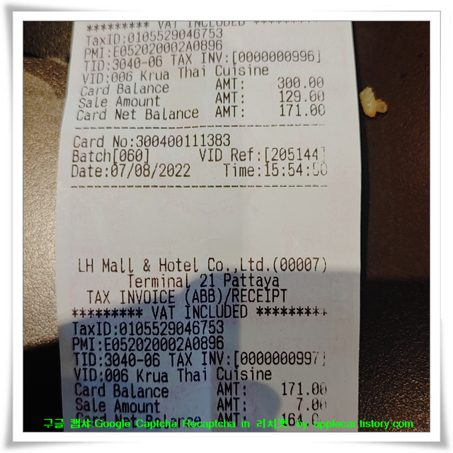 | ♠♠♠ 구글 캡챠, 리캡차 : 쏨땀, 고장난 냉장고, 태국식당 가격표 ♠♠♠ (0) | 2022.04.06 |