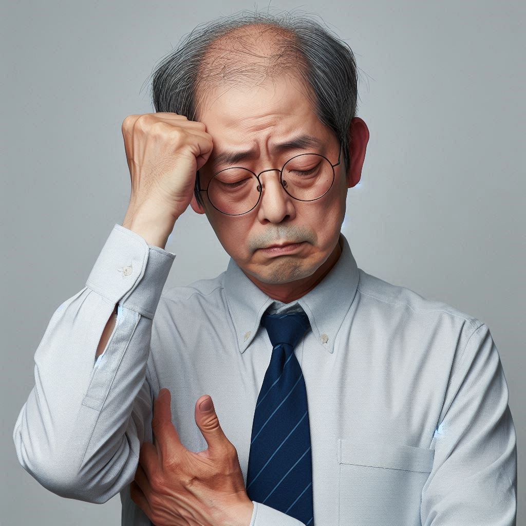 앞통수를 맞아서 황당한 사람, 앞통수 맞아서 골치아픈 한국 아저씨 by AI